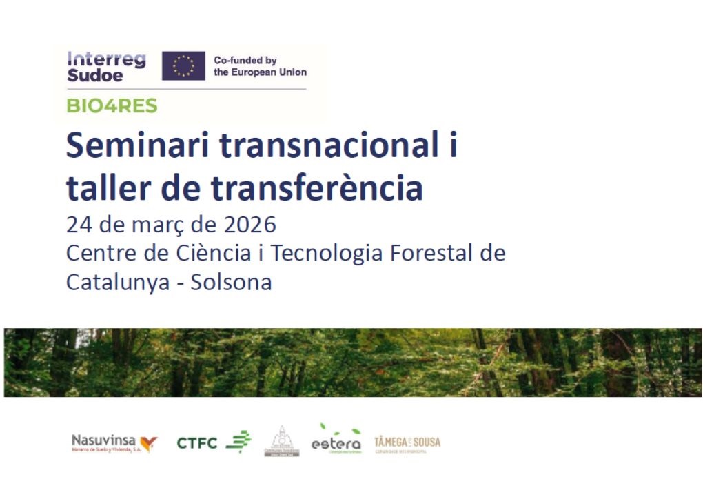 L’objectiu principal del projecte BIO4RES és millorar la prevenció i la gestió de riscos dels incendis forestals a la zona SUDOE mitjançant la valorització de la biomassa extreta, ajudant així a millorar la resiliència dels boscos sense comprometre’n els serveis ecosistèmics i socials.