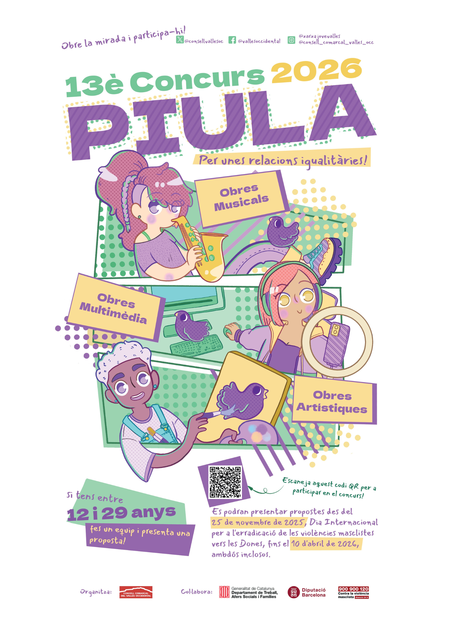 El Consell Comarcal convoca per tretzè any el Concurs “Piula per unes relacions igualitàries”, adreçat als centres educatius del Vallès Occidental i a les associacions i entitats juvenils i/o de caire social o feminista de la comarca.