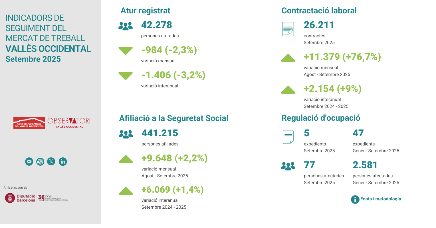 Durant el mes de setembre s’han registrat 26.211 contractes al Vallès Occidental.