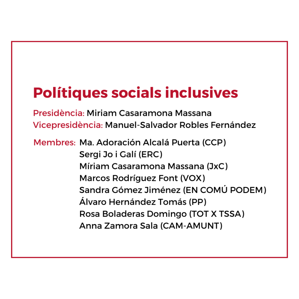 - Comissió Informativa de Polítiques socials inclusives.